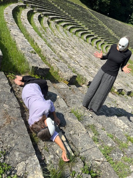 Unsere zwei Performances fanden an zwei verschiedenen Orten statt: im Amphitheater und in einem verfallenen Haus im Wald.