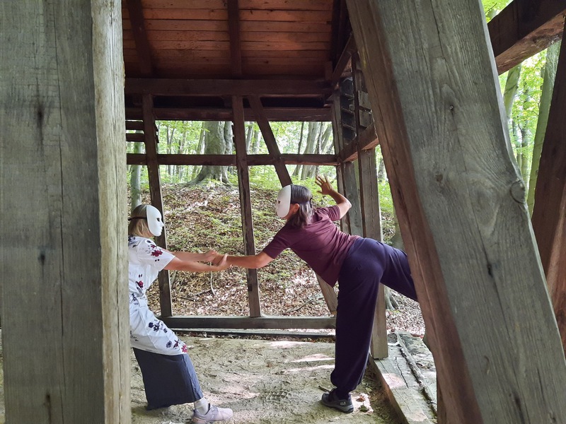 Eine dritte Performance fand an unserem letzten gemeinsamen Tag im Geopark in St. Annaberg statt. Dieses Mal fotografierte uns dabei ein anderer Teilnehmer der Begegnung, der Fotograf Heiko Symann.