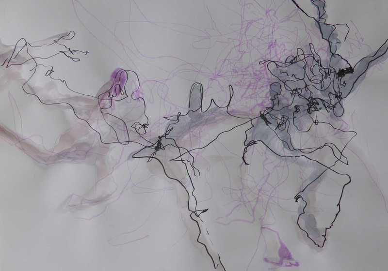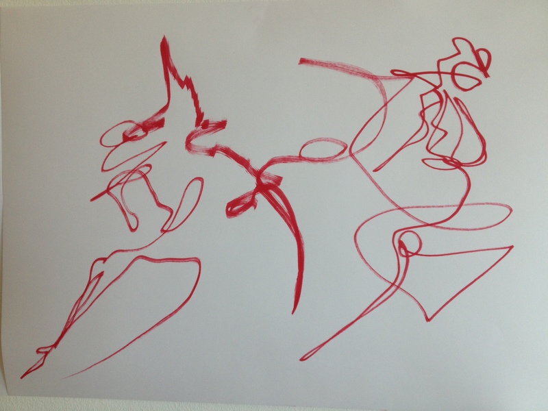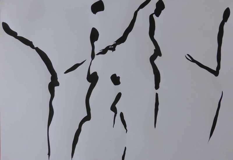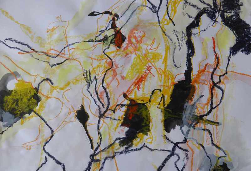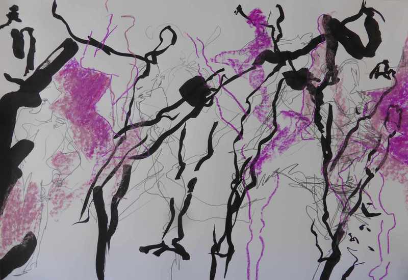Hier eine weitere große Papierarbeit, wo Tanz und Abstraktion ineinanderfließen: