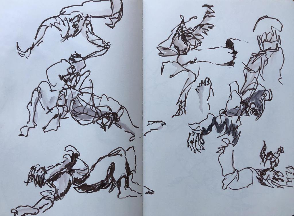 Hier einige meiner Proben-Skizzen der Tanzwerke Vanek Preuß zum Stück POLARIS, das im Januar 2025 seine Premiere in der Bonner Brotfabrik feierte.